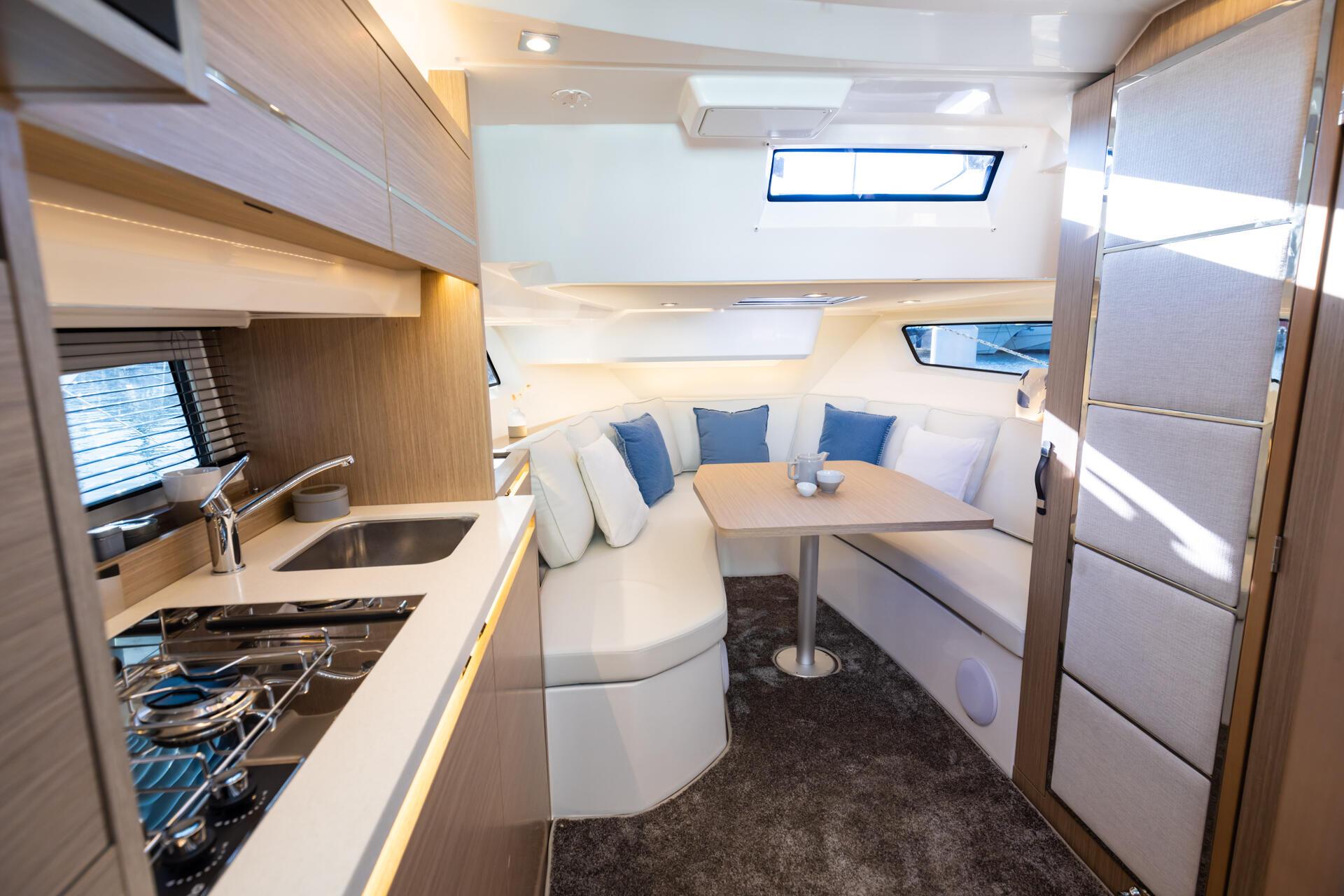 Với những đặc trưng của Cap Camarat, mẫu thuyền này có được sự cân bằng giữa không gian sống kết hợp với những điểm cải tiến mới nhất. Khu vực saloon phía trước với không gian bổ sung tạo ra một nơi sinh hoạt rất thoải mái.