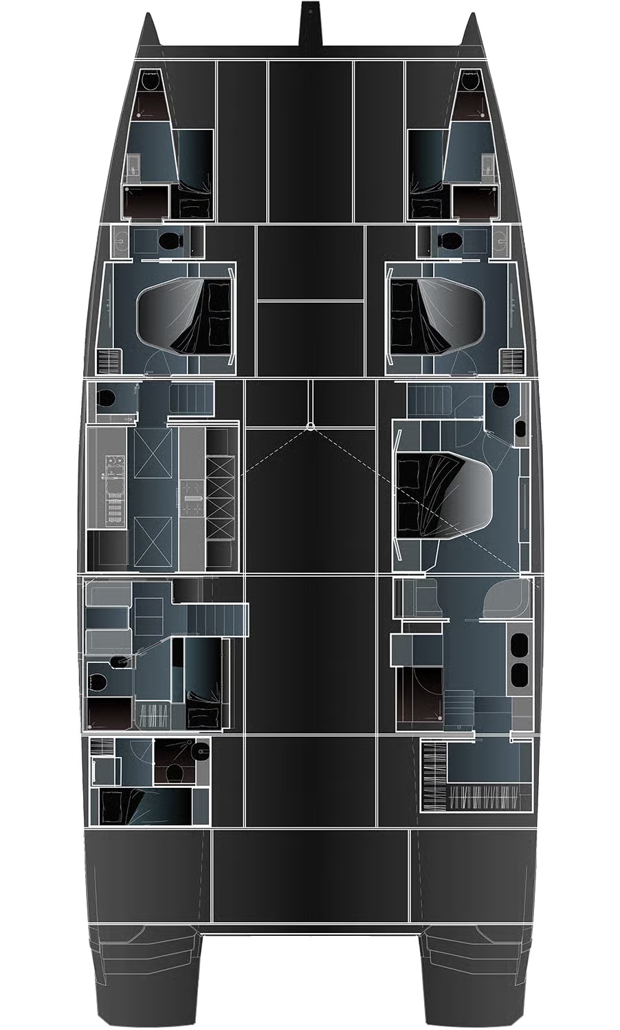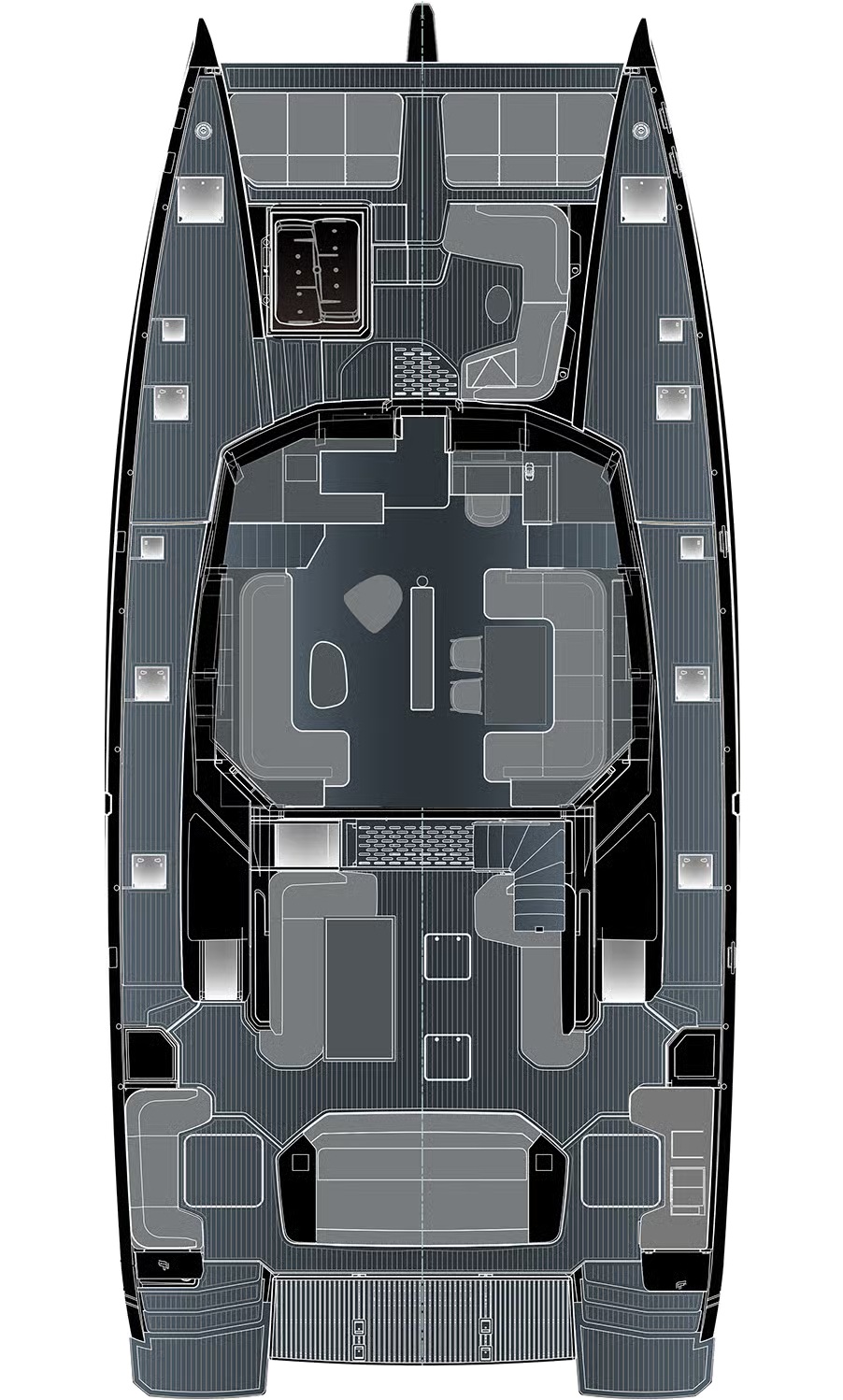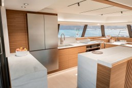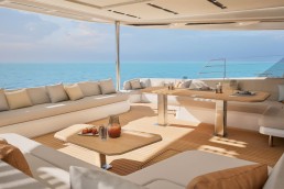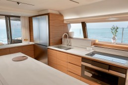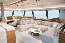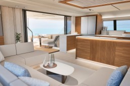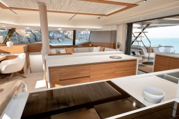 Trên FPY70, mọi thứ được tổ chức xoay quanh nhịp sống của bạn. Tối đa tám cấu hình bố trí cho phép điều chỉnh hài hòa giữa riêng tư và kết nối: khu bếp mở ra salon hoặc sân hiên phía sau, 3 đến 6 cabin cho khách, cùng tối đa 5 cabin cho thủy thủ đoàn. Các vật liệu cao cấp – gỗ hoàn thiện mờ, bề mặt khoáng chất, bảng màu dịu nhẹ – tạo nên bầu không khí trôi chảy và vượt thời gian. Sự tiện nghi được thể hiện liền mạch: ánh sáng, spa, điều hòa, hệ thống giải trí đa phương tiện, khu bếp… tất cả vận hành hài hòa để phục vụ trải nghiệm tận hưởng. Fountaine Pajot Yachts đồng hành cùng bạn để kiến tạo những hoàn thiện cá nhân hóa, phản ánh một nghệ thuật sống độc bản.