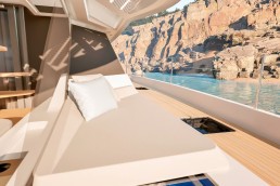FPY70 mang đến một cách nhìn mới về đại dương: không còn chỉ là nơi để đi qua, mà là một không gian để sống. Với 226 m² không gian mở hướng ra chân trời, nội thất và ngoại thất được kết nối liền mạch một cách tự nhiên. Dài 22 mét, du thuyền có thể đón tiếp tới 12 khách và 5 thành viên thủy thủ đoàn trong bố cục trôi chảy, ưu tiên sự tự do di chuyển. Từ sân hiên phía sau 51 m², flybridge toàn cảnh 31 m², salon phía mũi 26 m² mở rộng với khu spa, cho đến suite chủ nhân 25 m² – mọi không gian đều rộng mở với biển cả. Tại đuôi tàu, beach club trở thành khu thư giãn độc lập với ghế tắm nắng, bệ thủy lực và khoang chứa rộng rãi.