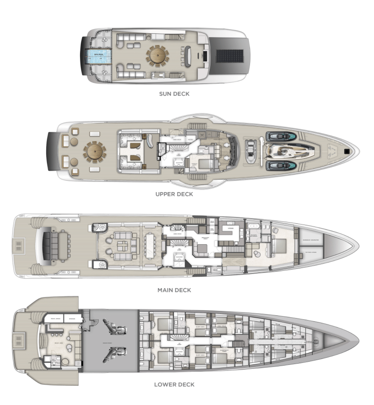 Về công năng, layout thông minh của Majesty 160 đáp ứng trọn vẹn nhu cầu nghỉ dưỡng của giới thượng lưu với sức chứa 12 thượng khách trong 7 phòng ngủ xa hoa. Đồng thời, khu vực dành cho thủy thủ đoàn cũng được bố trí tinh tế với 5 cabin lớn và phòng thuyền trưởng riêng biệt, đảm bảo không gian phục vụ chuyên nghiệp cho đoàn thuỷ thủ 9 thành viên.