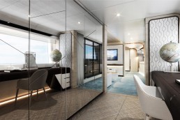 Majesty 160 xóa nhòa ranh giới giữa không gian sống trong nhà và ngoài trời. Ngoại thất tráng lệ, nổi bật với boong tắm nắng rộng thênh thang, hồ bơi vô cực, Hybrid Beach Club và các ban công gập mở linh hoạt. Sàn bơi lớn mang lại khả năng tiếp cận mặt nước dễ dàng chưa từng có.