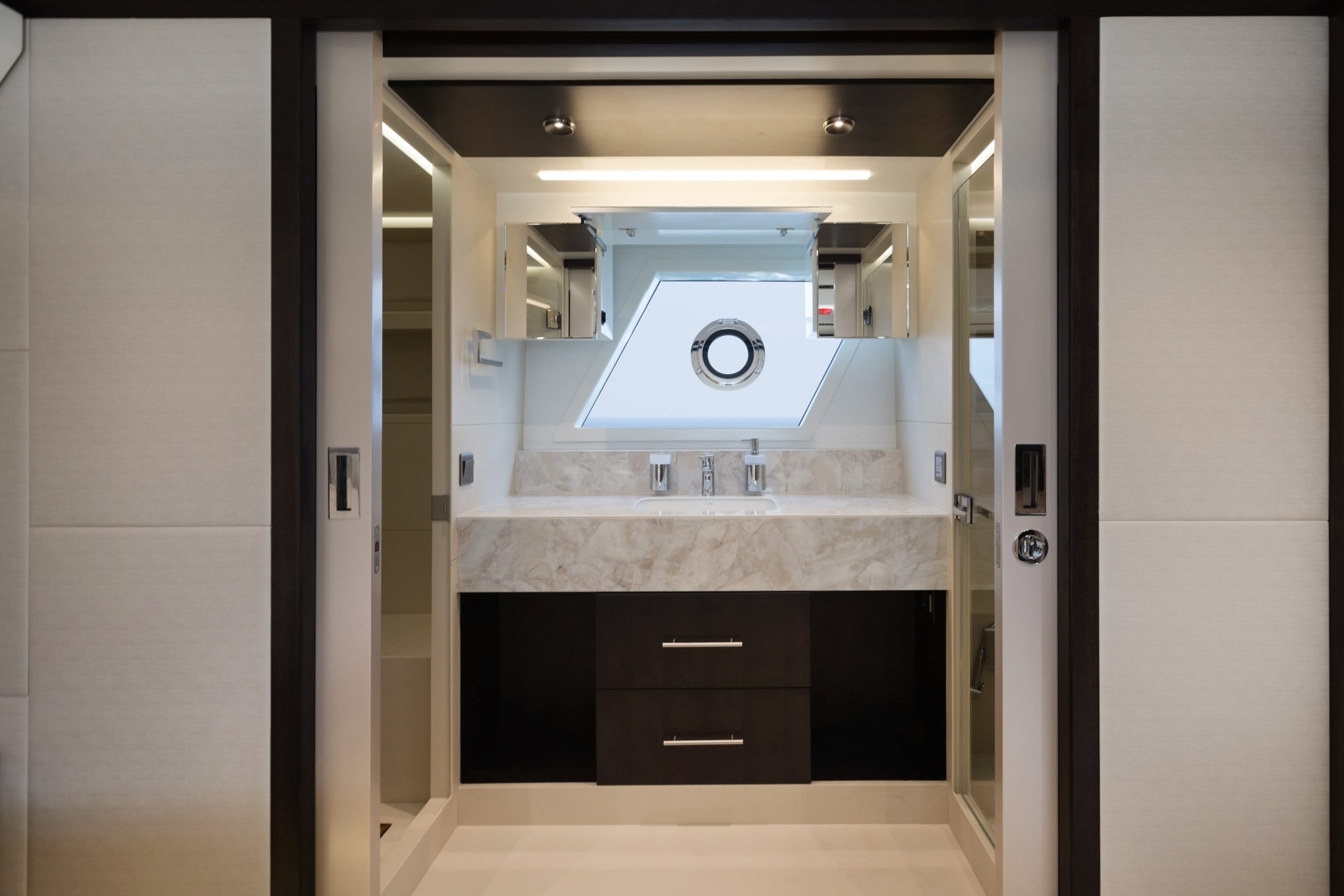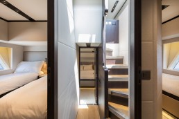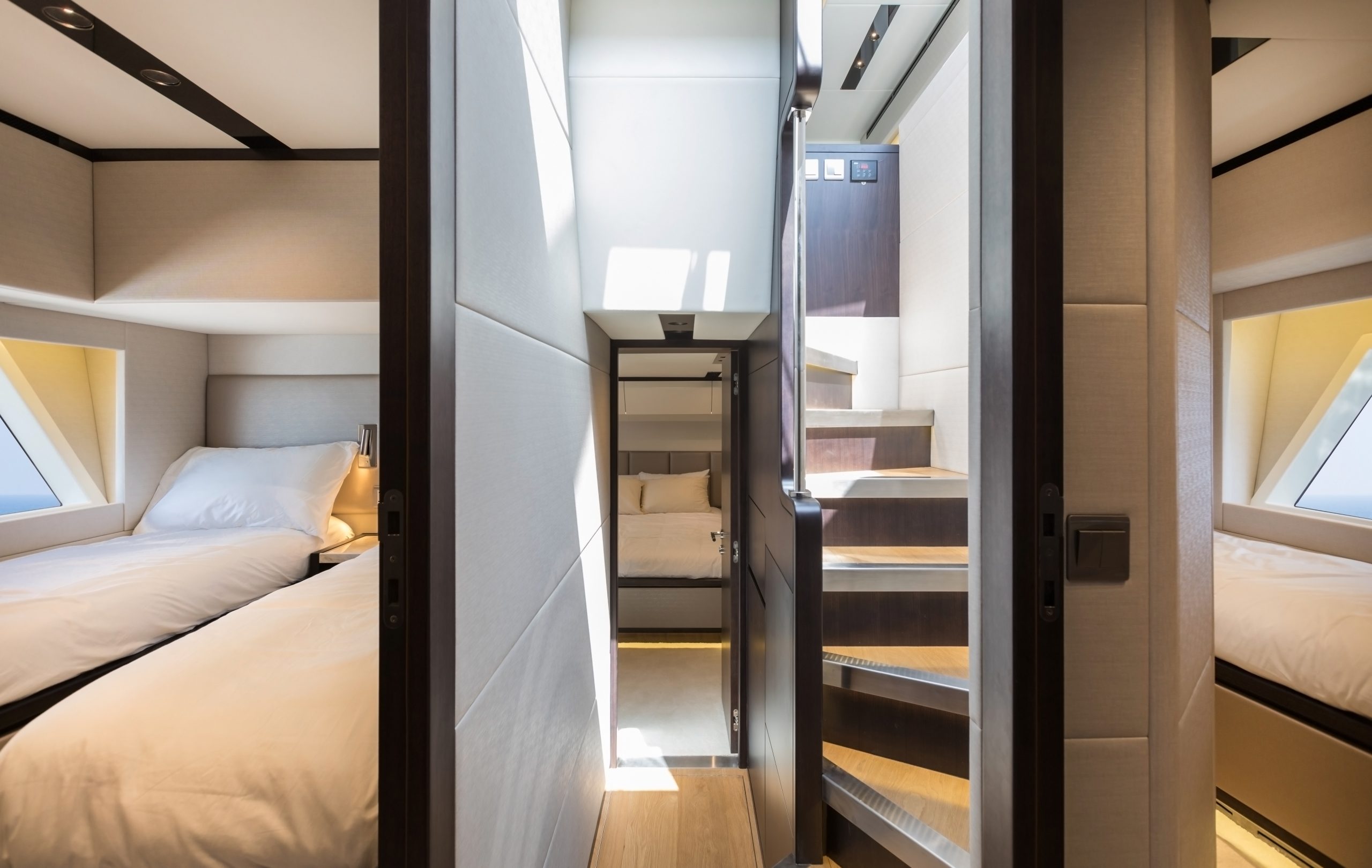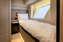 Sự tinh tế cũng được thể hiện rõ nét ở không gian nghỉ ngơi: Phòng ngủ master dành cho chủ thuyền được đặt ở vị trí đắc địa giữa thân thuyền, tận dụng tối đa cửa sổ lớn để dẫn ánh sáng và cảm giác rộng mở xuống tầng dưới. Với 4 cabin ngủ sang trọng dành cho khách cùng khu vực riêng cho thuyền viên, Majesty 62 đảm bảo sự riêng tư tuyệt đối cho những chuyến đi dài. Sở hữu khả năng vận hành hiệu quả và sức chứa nhiên liệu hơn 3.700 lít, đây là “ngôi sao” sáng giá trong phân khúc, hội tụ đủ 3 yếu tố: Hiệu suất – Không gian – và sự Hoàn mỹ.