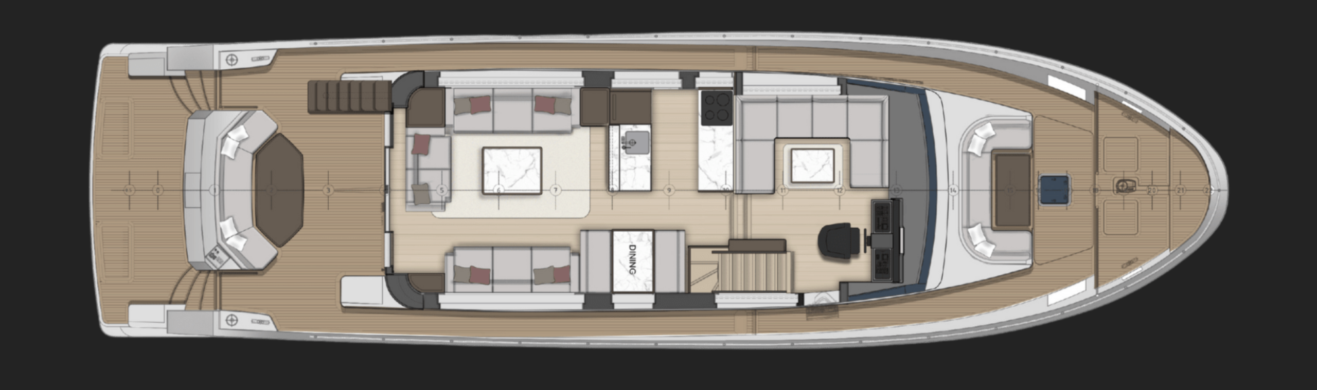 Rất ít mẫu du thuyền trong cùng phân khúc có thể so sánh được với Nomad 65 về sự rộng rãi của không gian nội thất cũng như mức độ tiện nghi.