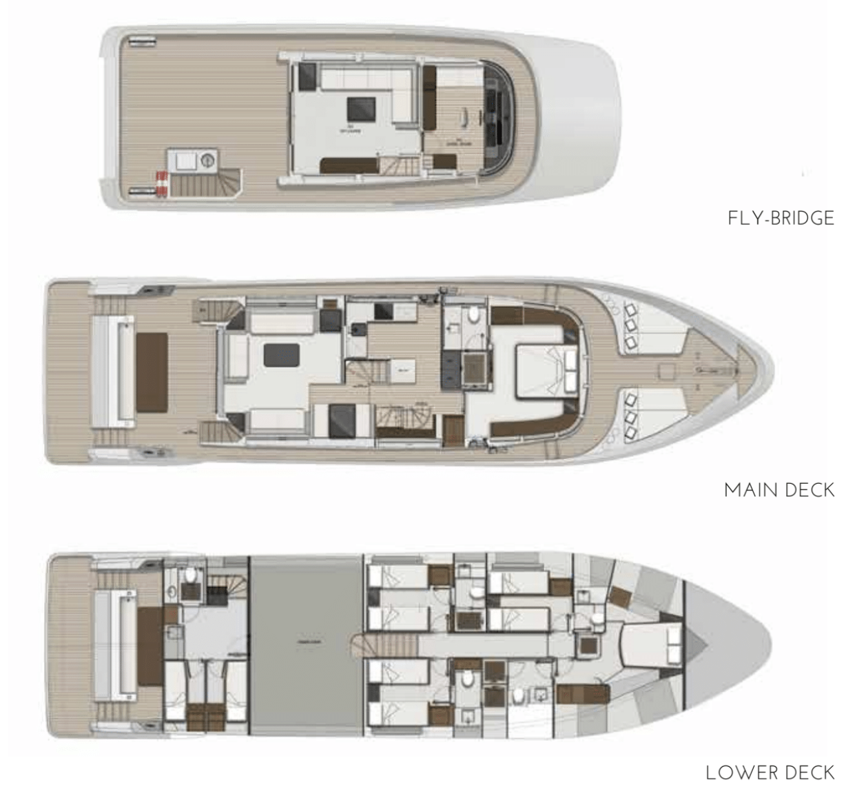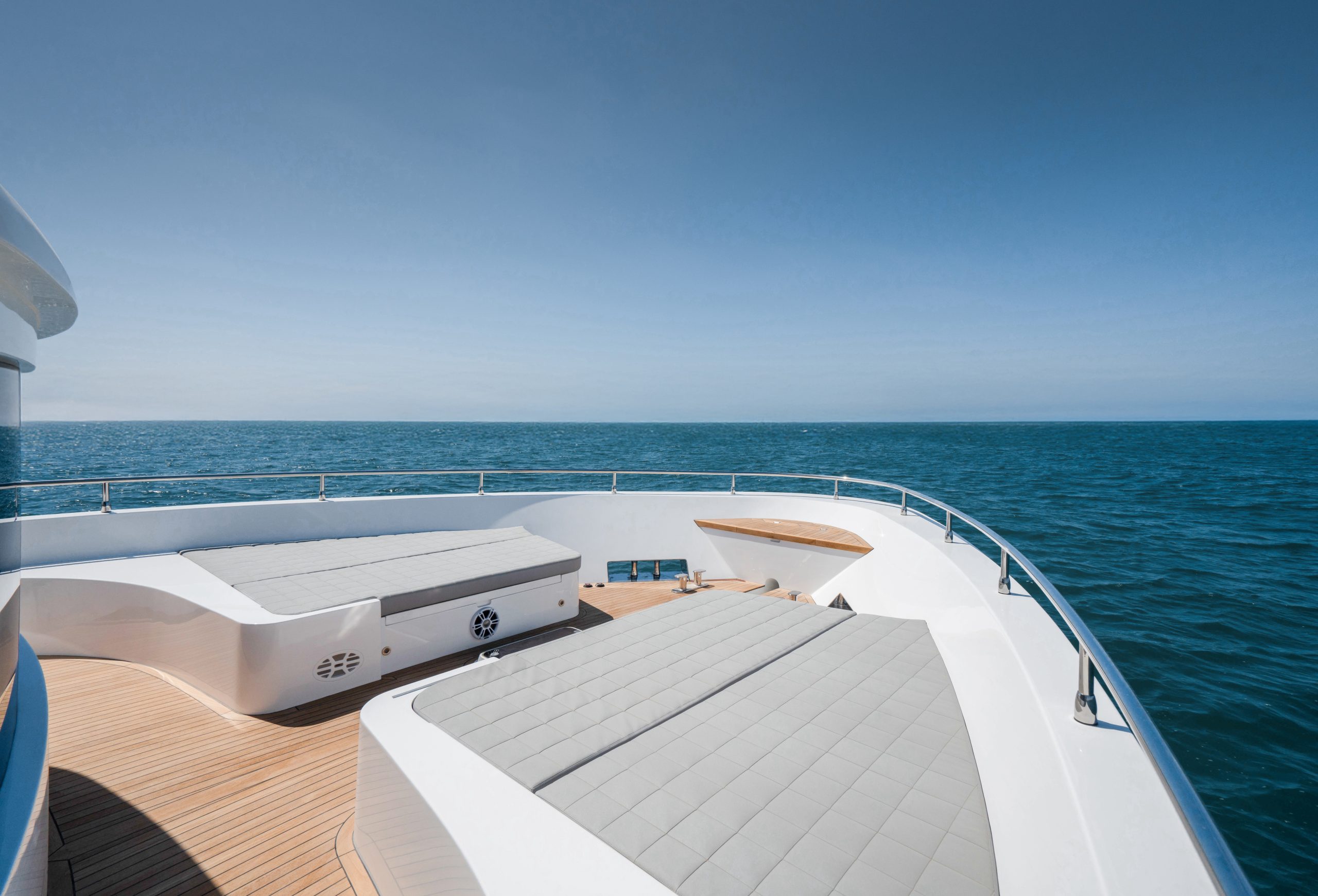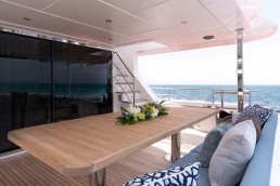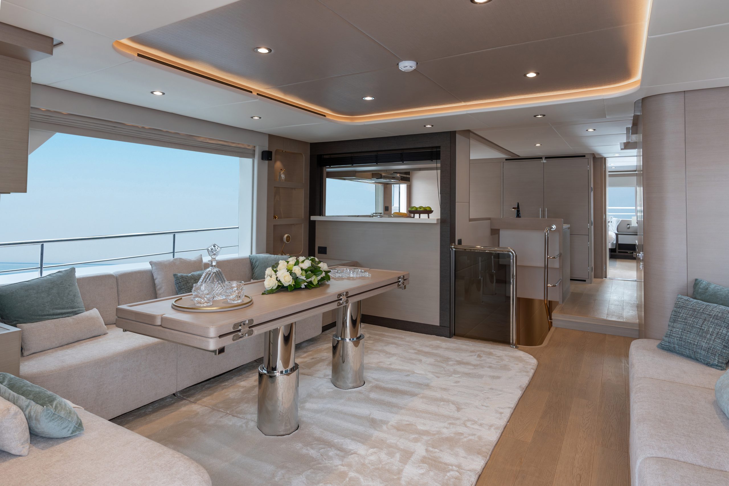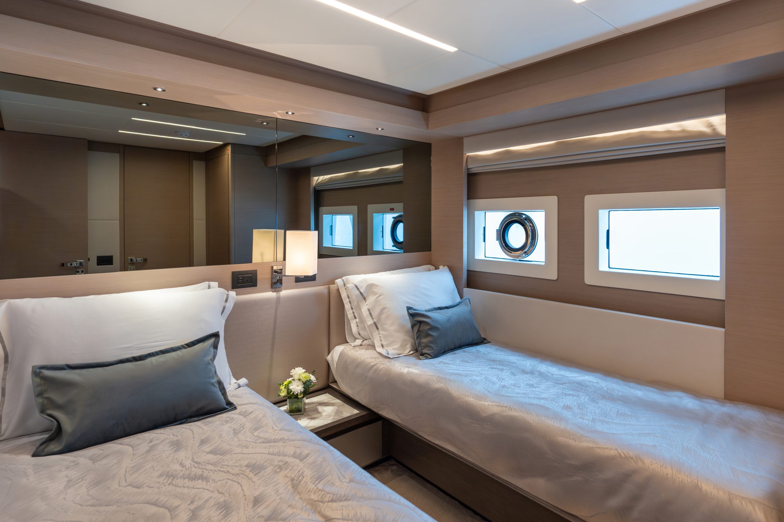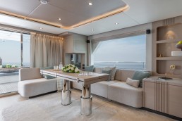 Không gian nghỉ ngơi được thiết kế tinh tế, đảm bảo sự sang trọng cho 10 thượng khách. Kết hợp cùng các boong rộng và những ô cửa kính panorama bao quanh, Nomad 75 biến mỗi khoảnh khắc trên tàu thành một bức tranh thiên nhiên sống động, nơi bạn có thể thu trọn vẻ đẹp của biển trời vào tầm mắt.