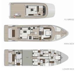 Chiều dài toàn bộ22,86 mChiều rộng6,05 mMớn nước tiêu chuẩn1,52 mCông suất tiêu chuẩn2 x 1.550 HPTrọng lượng không tải70 t approx.Bình nhiên liệu7.880lBình nước ngọt378 lKét nước thải378 l x 2Cabin4 phòng ngủ khách + 2 phòng ngủ thuỷ thủ