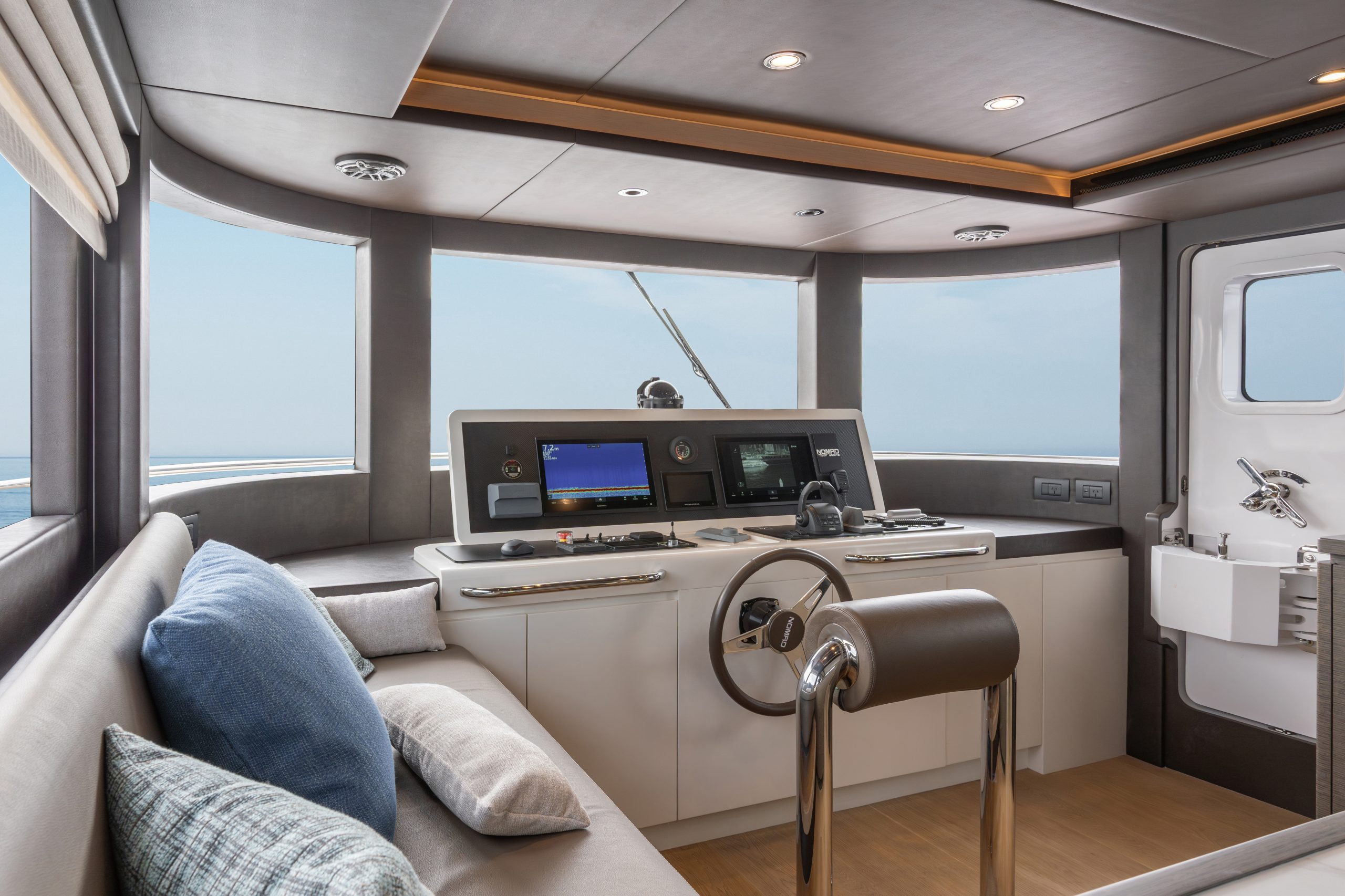 Điểm đắt giá của Nomad 75 nằm ở sự linh hoạt tuyệt vời: Bạn có thể lựa chọn phiên bản lái nóc mở phóng khoáng hoặc boong thượng khép kín thượng lưu. Dù ở phiên bản nào, du thuyền cũng mang lại cảm giác về không gian và sự thoải mái vượt xa những mẫu thuyền khác trong phân khúc.
